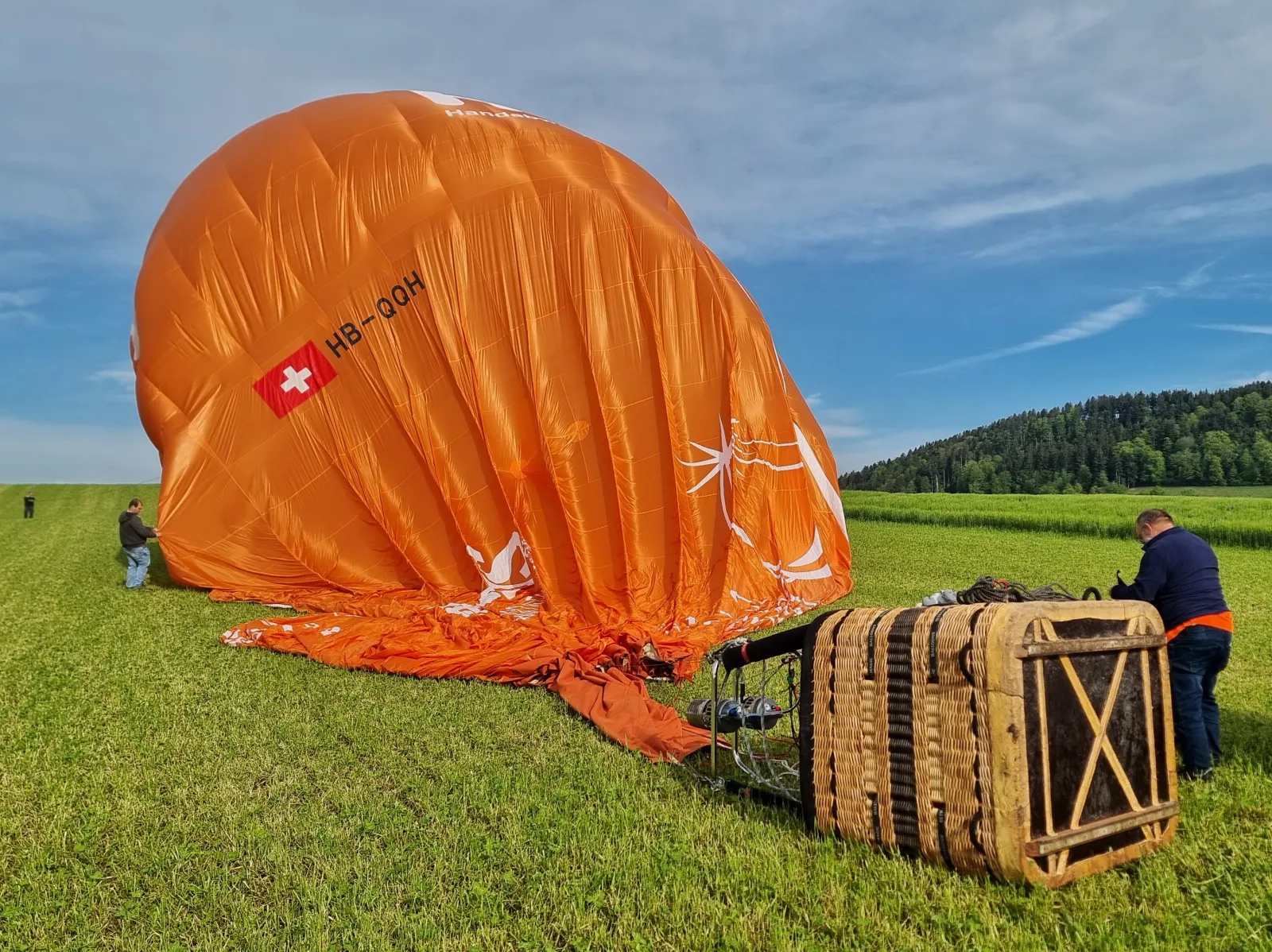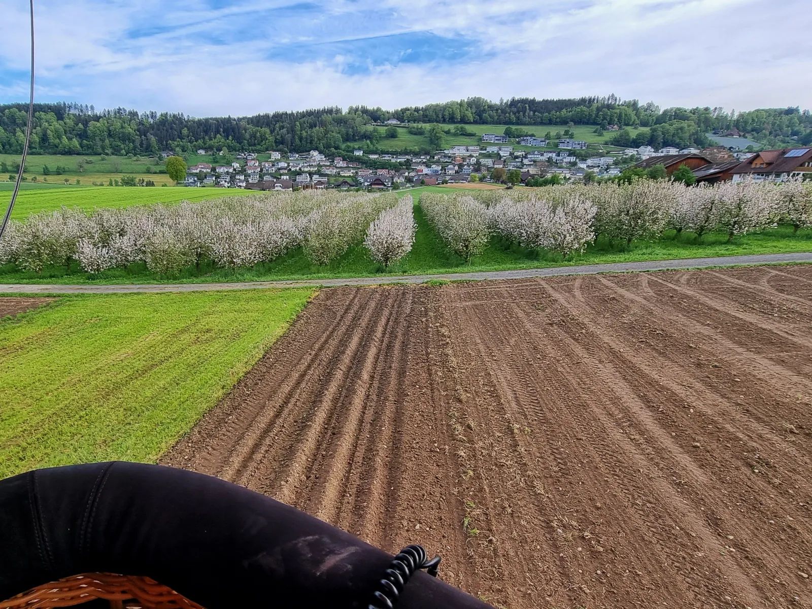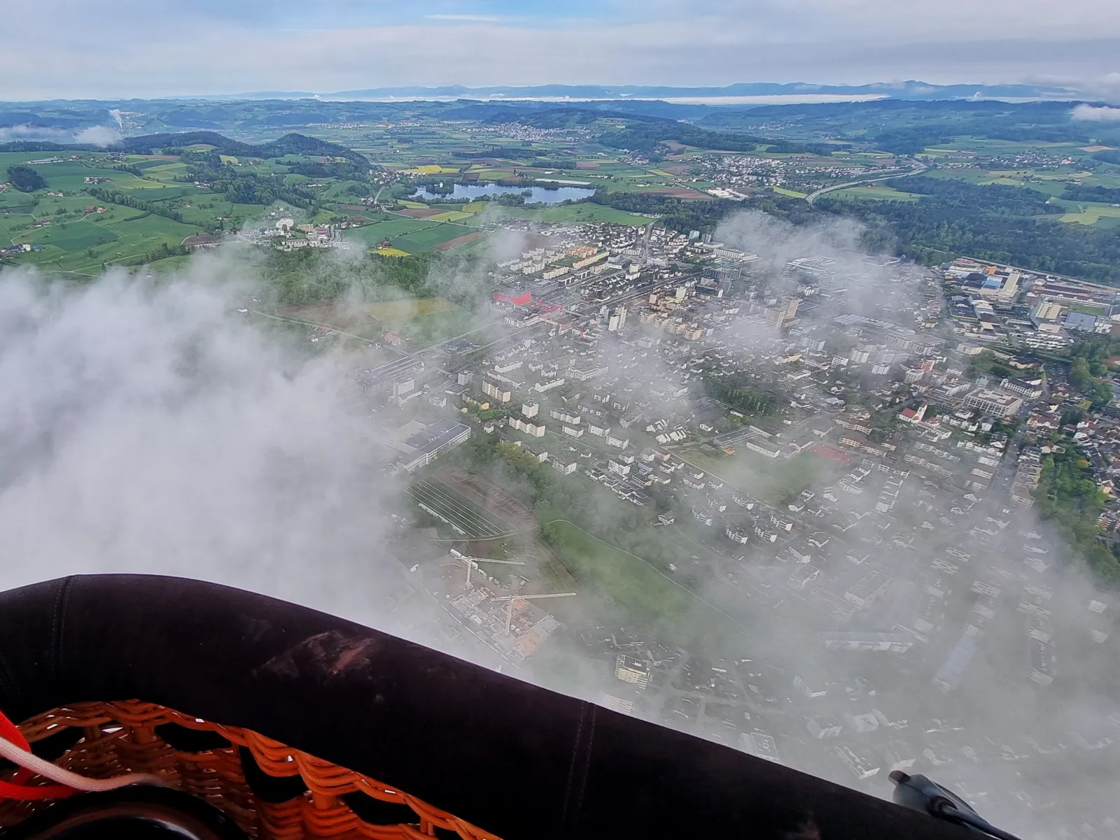 Am Samstagmorgen, dem 4. Mai 2024 fahren wir im dichten Nebel los Richtung Luzern. Geplant ist ein Ballonstart am südlichen Ende des Sempachersees. Mit dem prognostizierten Südostwind wollen wir uns Heimwärts treiben lassen. Bei Rain (LU) finden wir eine frisch gemähte Wiese, wo wir unsere Ballone auspacken. Neben unserem Handyballon startet Gregor mit seinem Daydealballon und gemeinsam heben wir bei moderatem Bodenwind um 07.35 Uhr ab. Die Fahrtrichtung entspricht exakt den Erwartungen und 200 Meter über Grund geht es mit rund 15 km/h Richtung Sursee. Klare Sicht in die noch tiefverschneiten Alpen und einzelne tiefe Wolken ergeben tolle Motive und wir lassen es uns nicht nehmen, oberhalb Sursee abzusteigen und in eine der Wolken einzutauchen. Die Fahrt geht weiter über den Mauensee, das Wauwilermoos und schlussendlich direkt über die Wetterstation Egolzwil, wo wir absinken und wiederum eine frische gemähte und noch nicht gegüllte Wiese zum Landen anpeilen. Bereits stehen viele Schaulustige bereit, als wir um 5 Minuten nach 10 Uhr wieder sanft zur Erde zurückkehren.