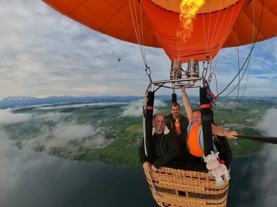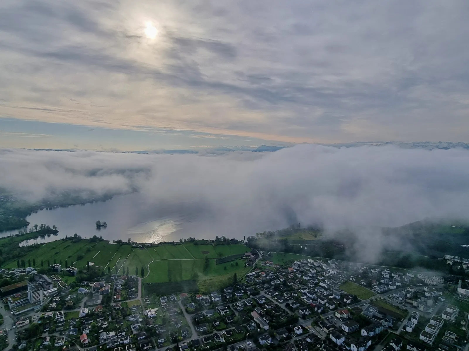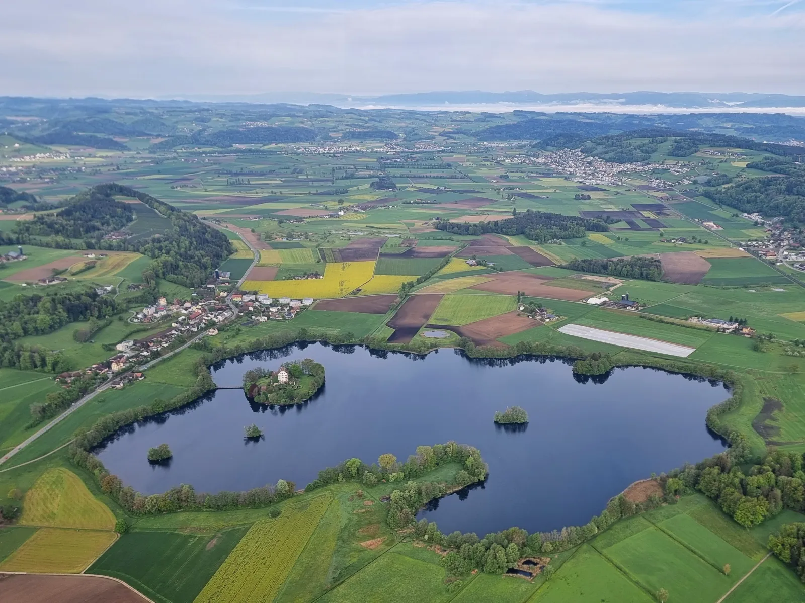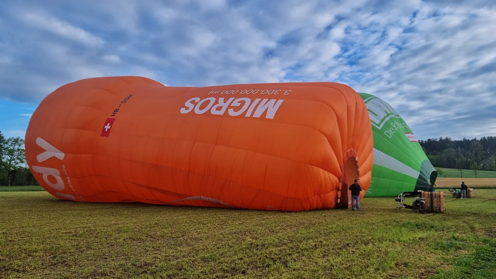 Am Samstagmorgen, dem 4. Mai 2024 fahren wir im dichten Nebel los Richtung Luzern. Geplant ist ein Ballonstart am südlichen Ende des Sempachersees. Mit dem prognostizierten Südostwind wollen wir uns Heimwärts treiben lassen. Bei Rain (LU) finden wir eine frisch gemähte Wiese, wo wir unsere Ballone auspacken. Neben unserem Handyballon startet Gregor mit seinem Daydealballon und gemeinsam heben wir bei moderatem Bodenwind um 07.35 Uhr ab. Die Fahrtrichtung entspricht exakt den Erwartungen und 200 Meter über Grund geht es mit rund 15 km/h Richtung Sursee. Klare Sicht in die noch tiefverschneiten Alpen und einzelne tiefe Wolken ergeben tolle Motive und wir lassen es uns nicht nehmen, oberhalb Sursee abzusteigen und in eine der Wolken einzutauchen. Die Fahrt geht weiter über den Mauensee, das Wauwilermoos und schlussendlich direkt über die Wetterstation Egolzwil, wo wir absinken und wiederum eine frische gemähte und noch nicht gegüllte Wiese zum Landen anpeilen. Bereits stehen viele Schaulustige bereit, als wir um 5 Minuten nach 10 Uhr wieder sanft zur Erde zurückkehren.